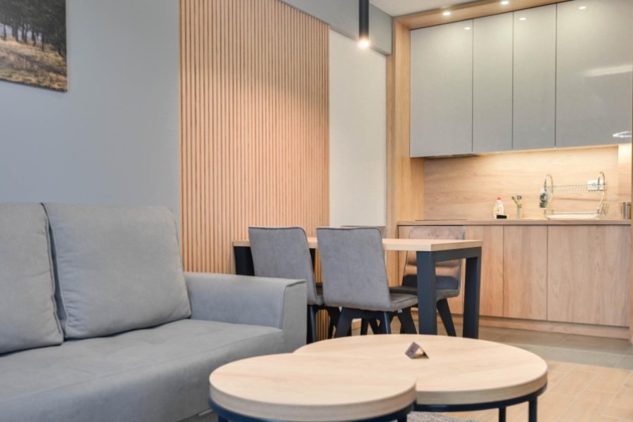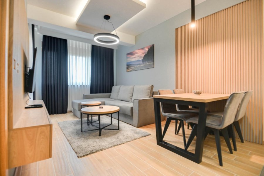 Besplatan bežični internet (Wi-Fi) i kablovska TV sa LCD televizorom. U toku hladnijeg perioda, gosti sami podešavaju temperaturu u apartmanu pomoću termostata. Čisti peškiri i posteljina, kao i fen za kosu, su dostupni u apartmanu. Apartman se sastoji od predsoblja, dnevnog boravka, spavaće sobe, kupatila, kuhinje i terase. U kompletno opremljenoj kuhinji, goste očekuju ugradni šporet sa rernom, frižider, i naravno posuđe i pribor za ručavanje.