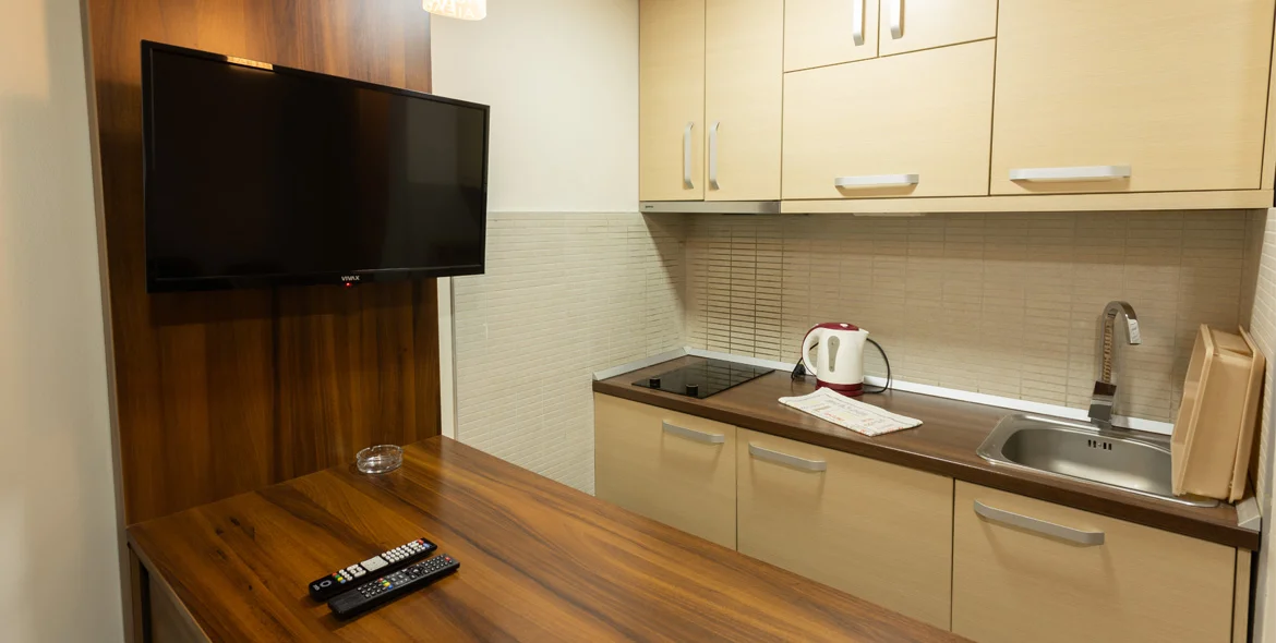 Posedujemo tri vrste apartmana. 3+0, 2+1, 2+0. Svaki naš apartman sadrži kompletno funcionalnu kuhinju i savremeno opremljeno kupatilo sa tuš kabinom.